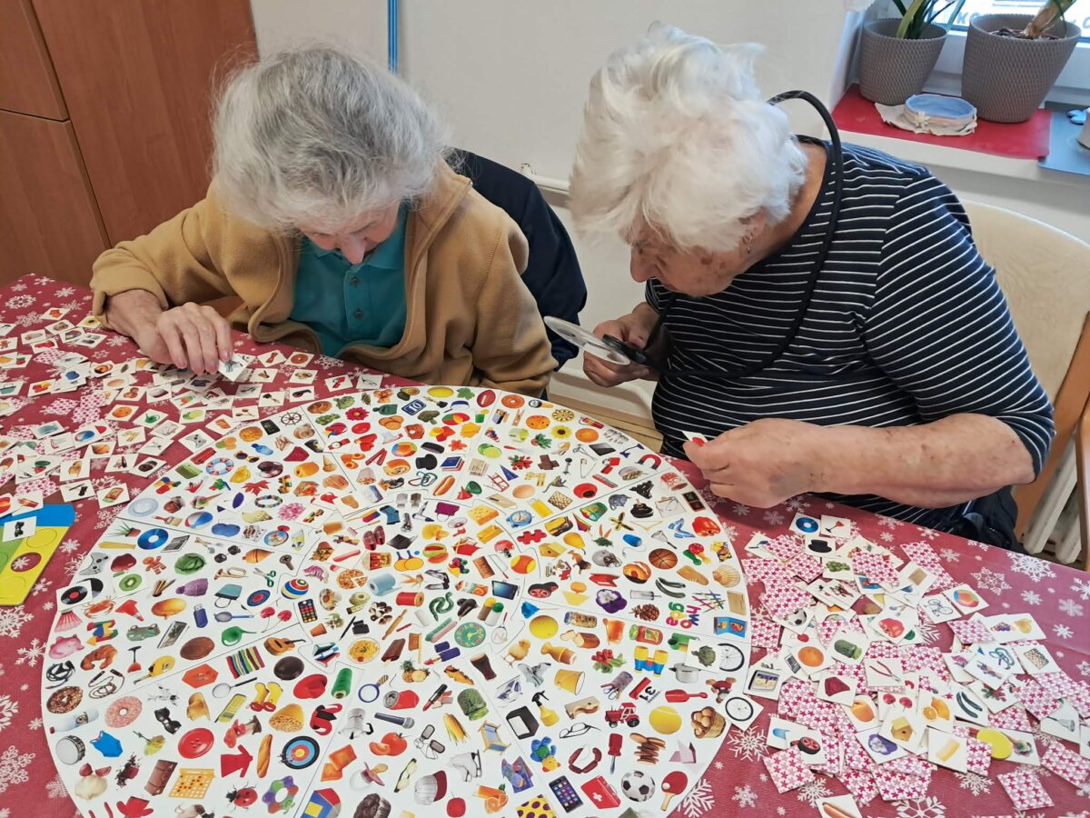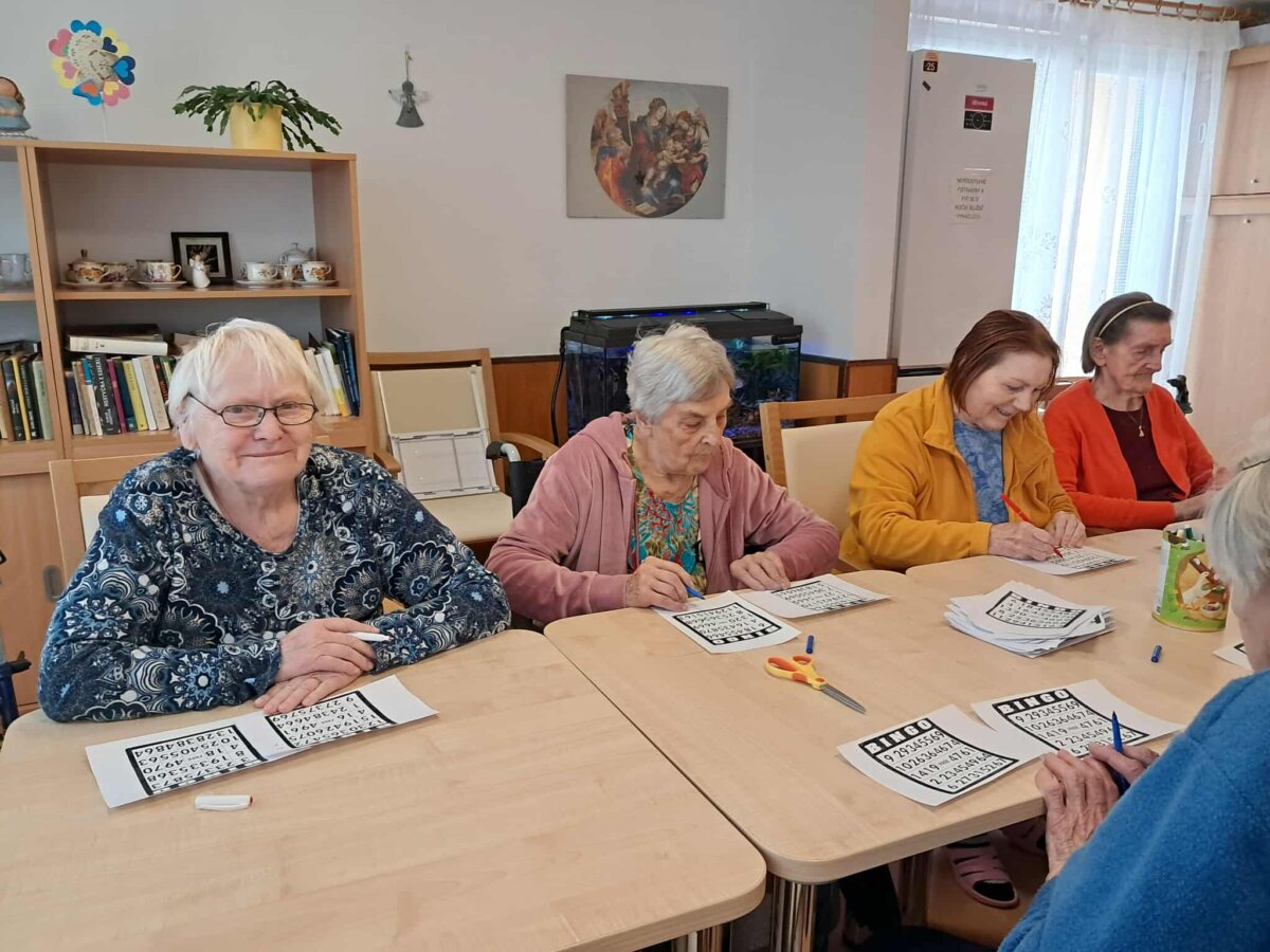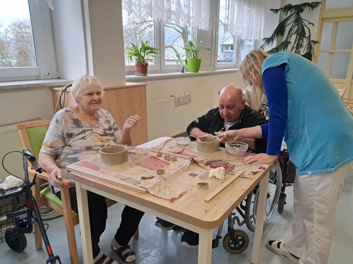 V únoru jsme se těšili z Jenny a s Kulíškem, hráli jsme různé hry a trénovali paměť. Vyráběli jsme různé výrobky a připravovali jsme keramické květináče na velikonoční osení. Notovali jsme si s Věrkou při muzikoterapii, setkávali jsme se na kafíčku v naší kavárně, i narozeniny jsme slavili, jak se patří. Pravidelně se také potkáváme při Spolu a chutně a ochutnáváme dobroty našich kuchařek. Do jídelníčku jsme odhlasovali tiramisu chia dezert. Konali se u nás i křtiny. Dopřávali jsme si pobyt venku a do těla nám dávaly pracovnice pohybové aktivizace.